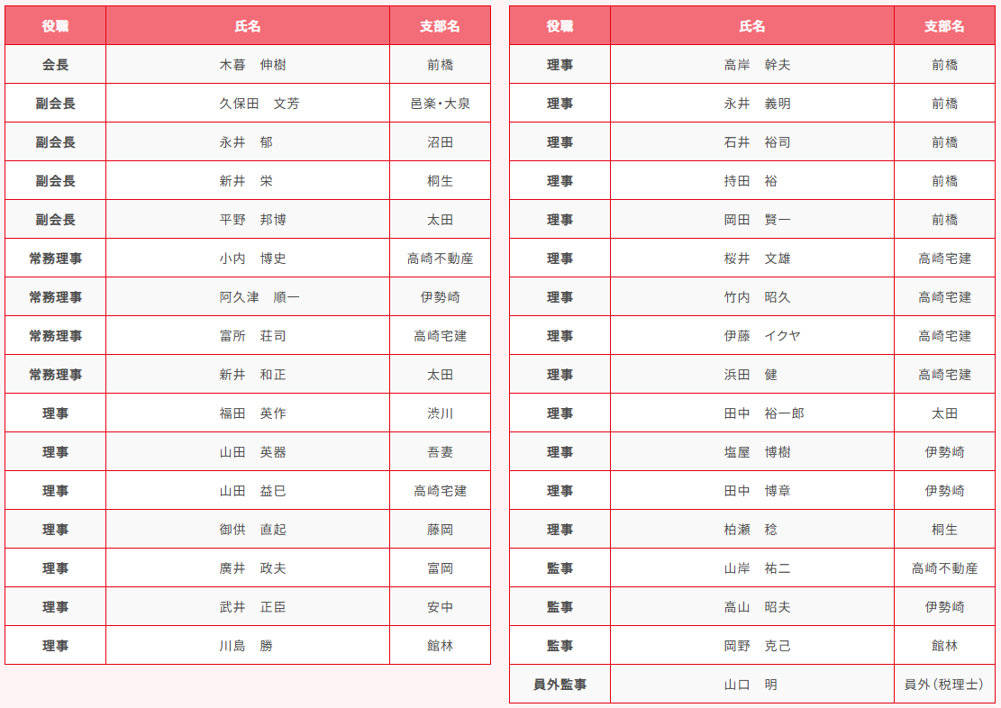 令和7年度 (一社)群馬県宅地建物取引業協会 役員一覧